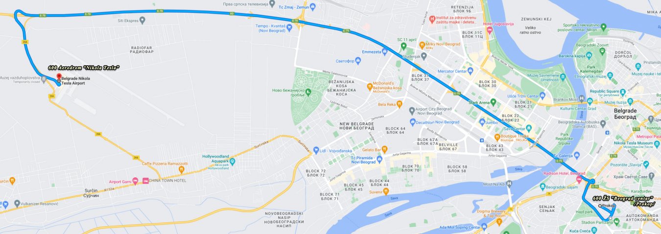 Ovde je svakako predložen takt od 20 minuta pa sam ga ja iskoristio na najbolji način da nema velike rupe bez busa na stanici, naravno da taj takt može biti i manji u špicu i ako ima dovoljno sredstava i vozača za to kao i da se linije zovu drugačije opet su dve zasebne linije. Slažem se da treba da bude dosta linija sa aerodroma.Da, ali šta ako ti je realan cilj železnička stanica Beograd centar koja je, nažalost, početna stanica većine vozova u ovoj državi? Onda šta, čekaš sa koferima 20 minuta, jer baš onaj koji ti treba nije došao?Mislim treba da bude što više linija sa aerodroma, samo iskreno mislim da tu ozbiljnije treba da se poradi. Zašto nemati više njih, ekspresnih, i skratiti mučenu 72?
