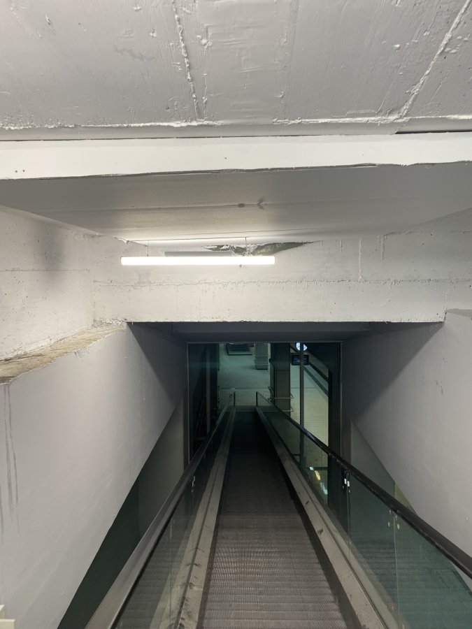 Који прелаз из оног фенси сређеног хола са овим само офарбаним бетоном.