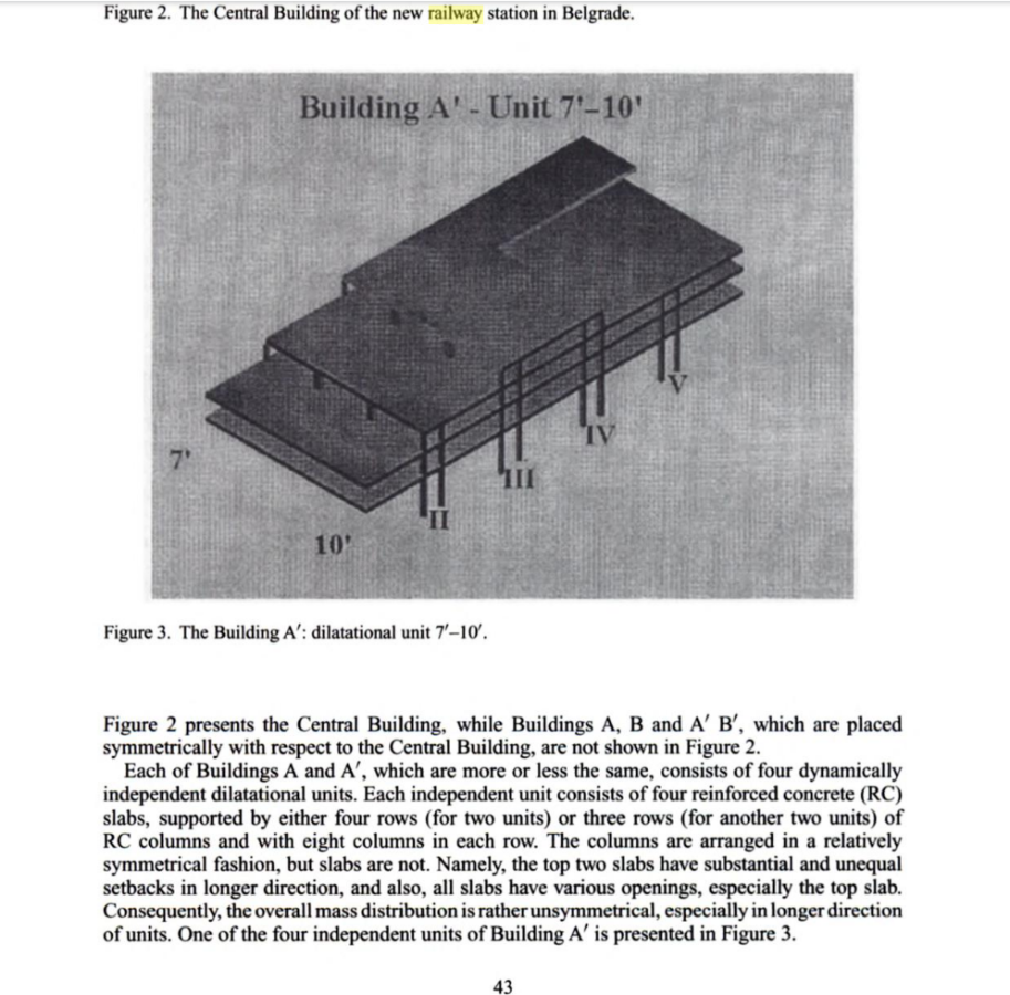 U prvom clanku se konstatuje da bi gradevina zbog nesimetricnosti - nisu u pitanji stubovi nego dimenzije ploce u nivoima koje su razlicitih geometrija zbog specificnih otvora (stepenista, konvejeri, liftovi) i koji plocama jedne iznad drugedaju drugacije inercije i rotacijsku amplifikaciji.