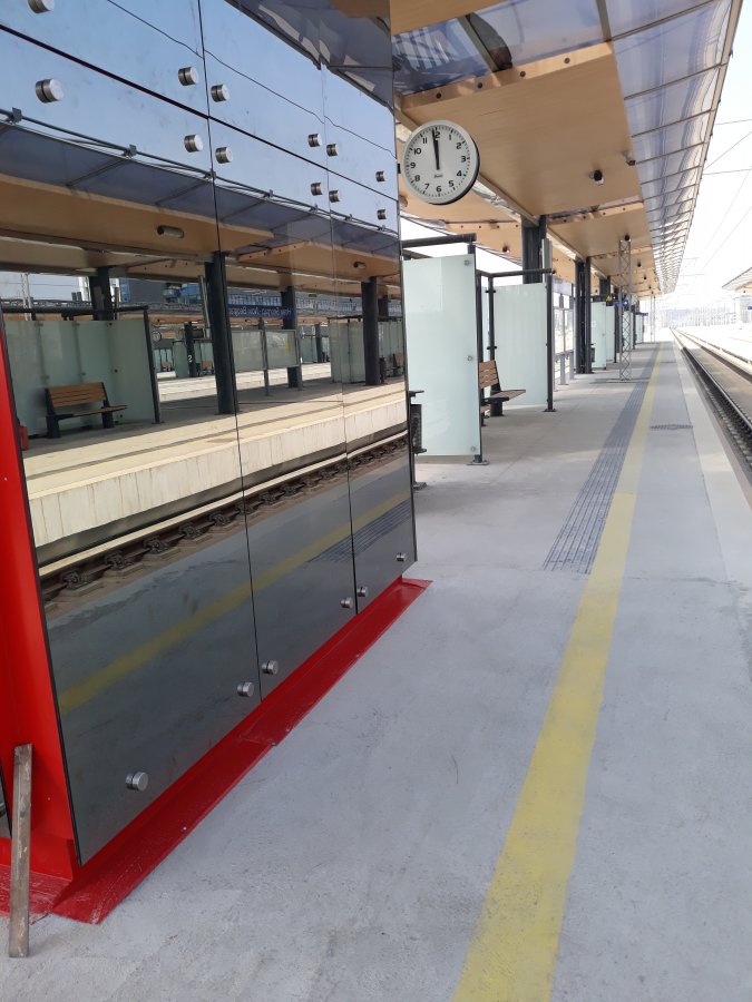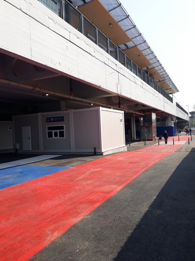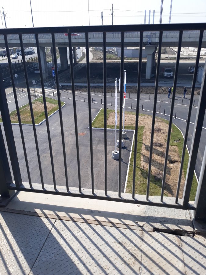 Po projektu, blagajna će biti ispod stepeništa. Tu bi trebalo da ceo prostor ozidaju i naprave šaltere.Буквално су требали да ставе зидове од панела од степеништа до лифтова, затворе простор и ту сместе шалтер салу-чекаоницу и тоалете. Ово никакве логике нема да се онолико шета до контејнерске благајне па натраг до лифтова или степеништа. Стари шалтер-контејнер поред степеништа је био неупоредиво боље решење. Простор испод подеста степеништа је могао исто да се искористи за смештање неге просторије, овако ће бити мртав угао у ком ће се гомилати смеће.