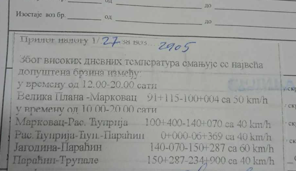 Auuuu i nova brza pruga ode na 40.Koridorom 10 ovih dana između Niša i Beograda u periodu od 10/12h-20h ne brže od života, odnosno 40 km/h.