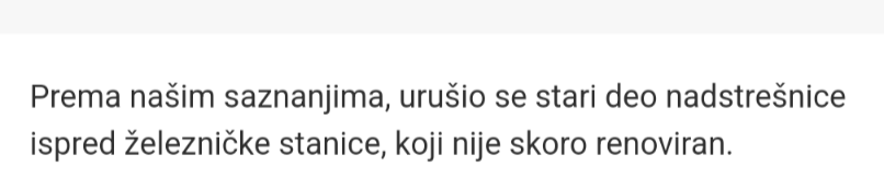 Čuj ove stručnjake kaže urušila se staklena terasa: Staklena terasa novosadske Železničke stanice pala je danas oko 12 sati, iznad ulaznih vrata u objekat stanice.srušila se cela betonska konstrukcija nadstrešnice kao oni balkoni u BW![]()