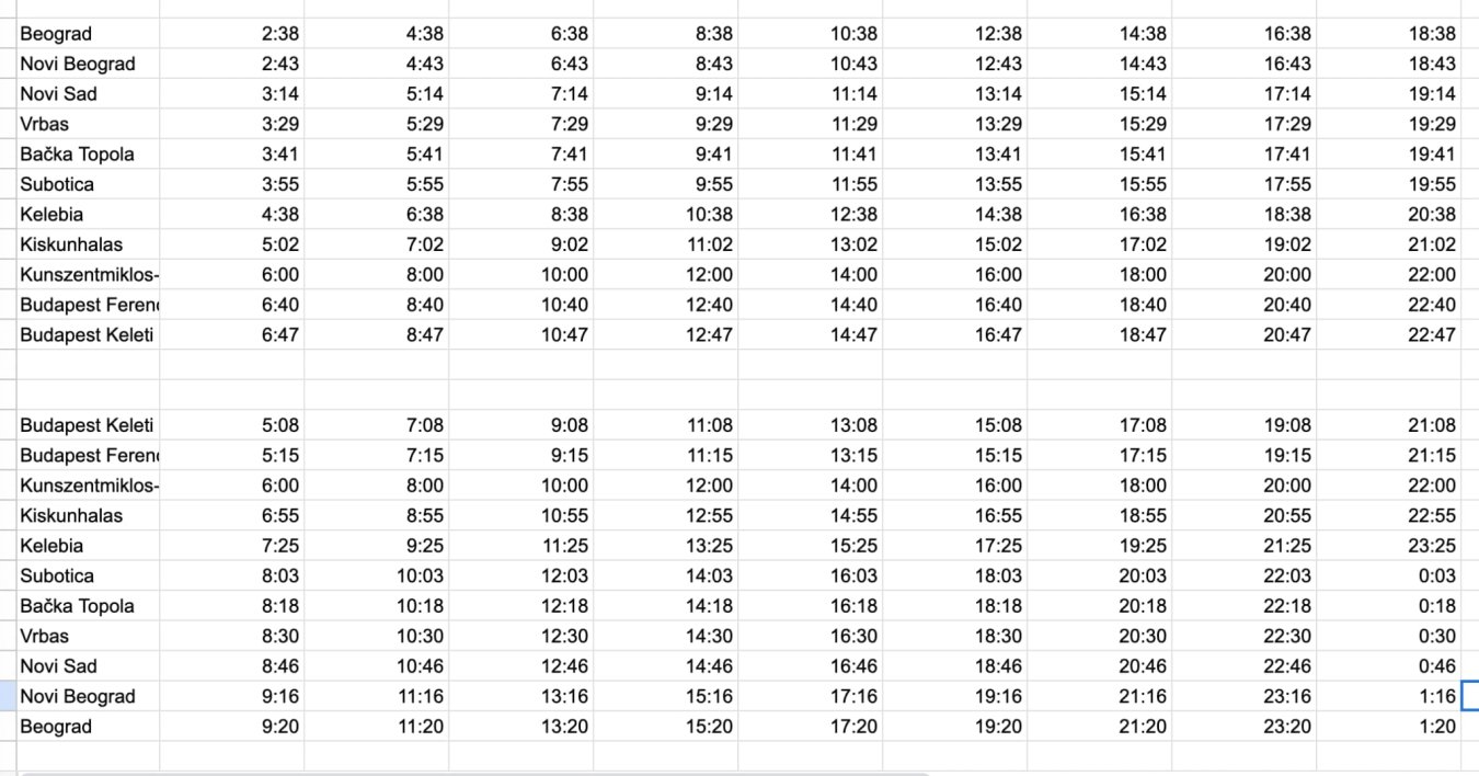Taurus + kola će voziti skroz do Beograda. Naš Soko skroz do Budimpešte. 2 para voza treba da se produže do Budimpešte.Znači otprilike ovako nešto kad se uzme u obzir nacrt sa Madjarske strane...