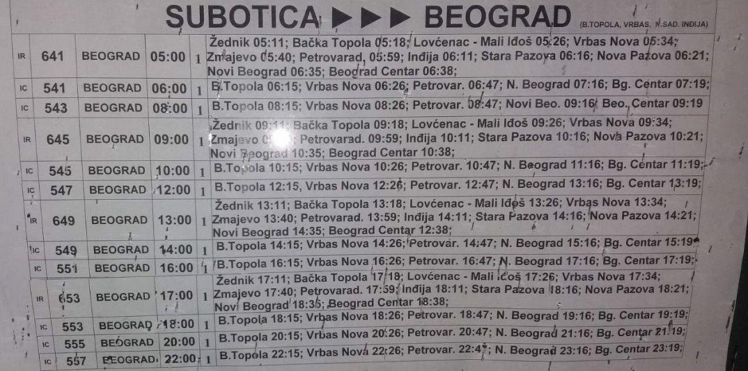 Piše SUBOTICA - BEOGRAD, dole u tablici ide prvo Beograd 05:00 pa Žednik 05:11... i na kraju BG Centar 06:38