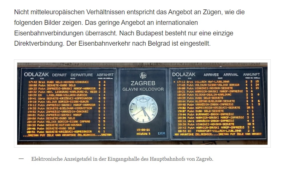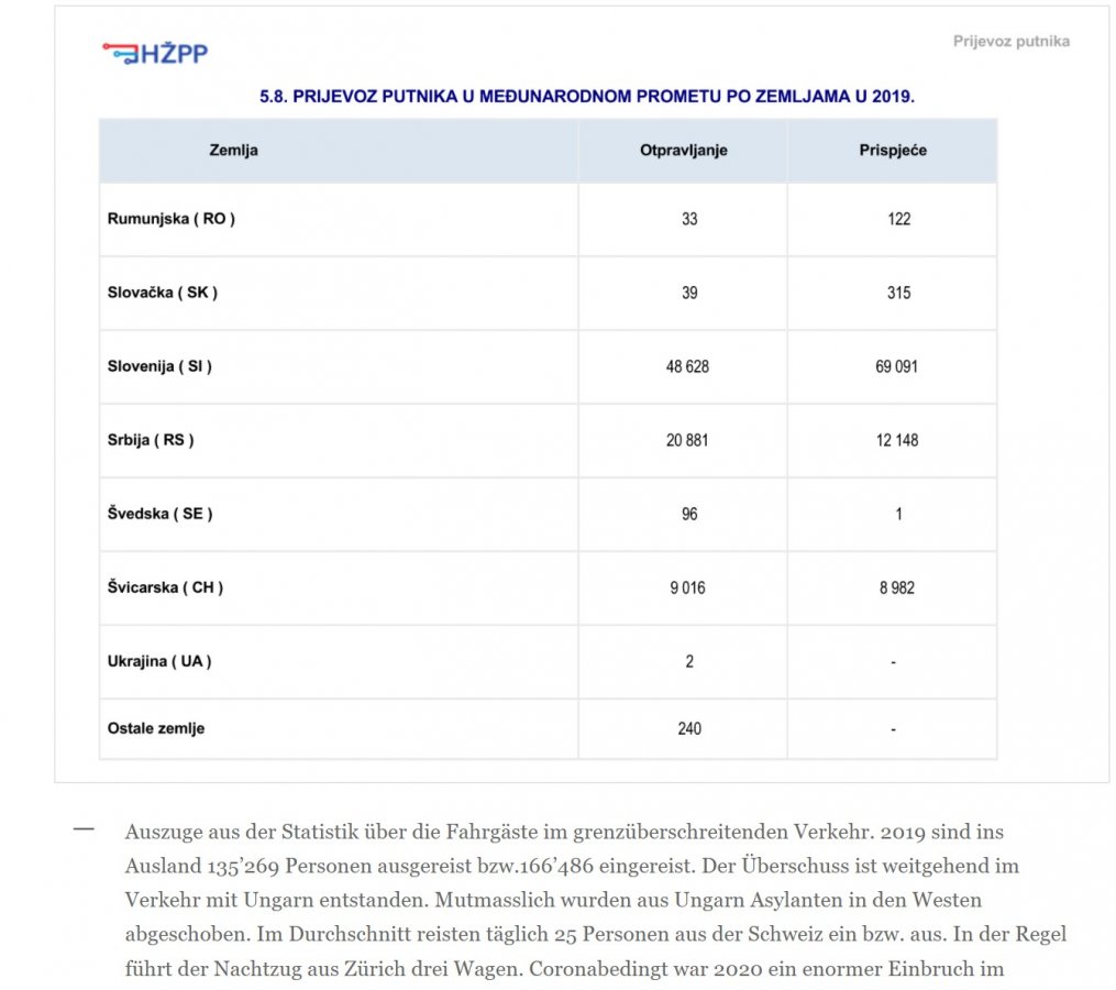 Zastrašujuće je koliko naše železnice nazaduju za komšilukom; Zagreb GK samo tokom popodneva i večeri ima više polazaka vozova nego Beograd Centar tokom celog dana od 24 časa. Red vožnje toliko gust kao da je u pitanju glavna autobuska stanica, a ne železnička.A sto se tice intenziteta, u proseku Zagreb ima dnevno 25 putnika iz Ciriha, Podatke 2019Pogledajte prilog 128177Pogledajte prilog 128178