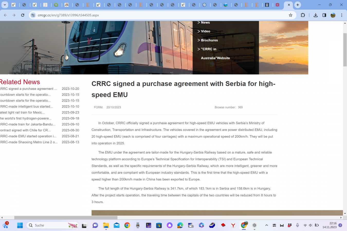 Prilog CRRC o izvozu vozova u Evropu: