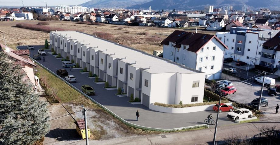 Искрено само сам гуглао куће у низу да нађем одговарајућу слику са гаражама доле. Ово је нешто у Хрватској, нисам сигуран да ли је изграђено.Ovaj render jel to izgrađeno to je više varijanta kucica u nizu