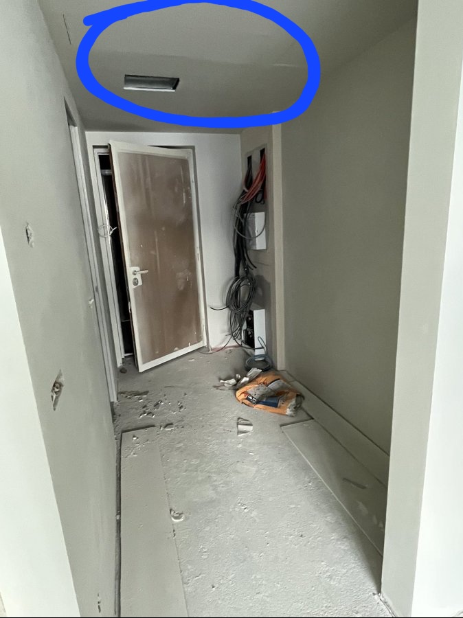 Kocka nije izgletovana ni fiksirana, jasno se vide ivice , kao poklopac otvora koji nije izgletovan. Doduse lici kao da je nesto radjeno i nije zatvoren taj deo plafona.Hm, vidjeli bi se spojevi ploča. Meni više liči da se je ploča ovlažila pa se izvitoperila.