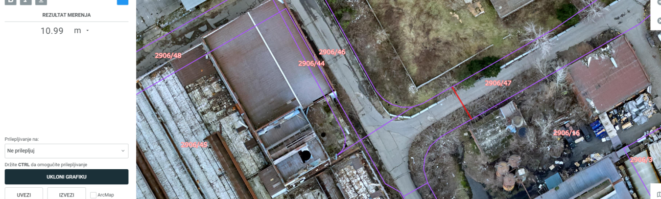 I na kraju parcela 2906/47 je tačno 11 metara što odgovara širini puta koji rade 5 metara širine trotoara i 6 metara put.