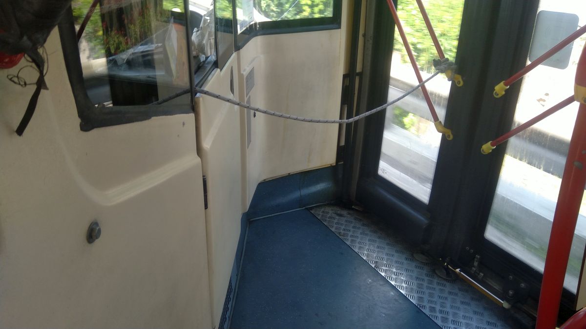 Prvo sa aspekta preglednosti, kao da nije dovoljno nepregledno ta nesretna zakrivljena kabina, nego vozaču u tom uglu treba da stoje još i putnici. Gomila skretanja udesno, preglednost retrovizora nije dovoljna, taj deo treba da bude prazan.