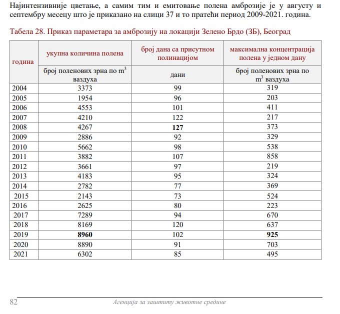I za kraj barem nešto pozitivno - ambrozija je u opadanju, e sad, da li je to do klime ili suzbijanja - videćemo u narednim izveštajima.