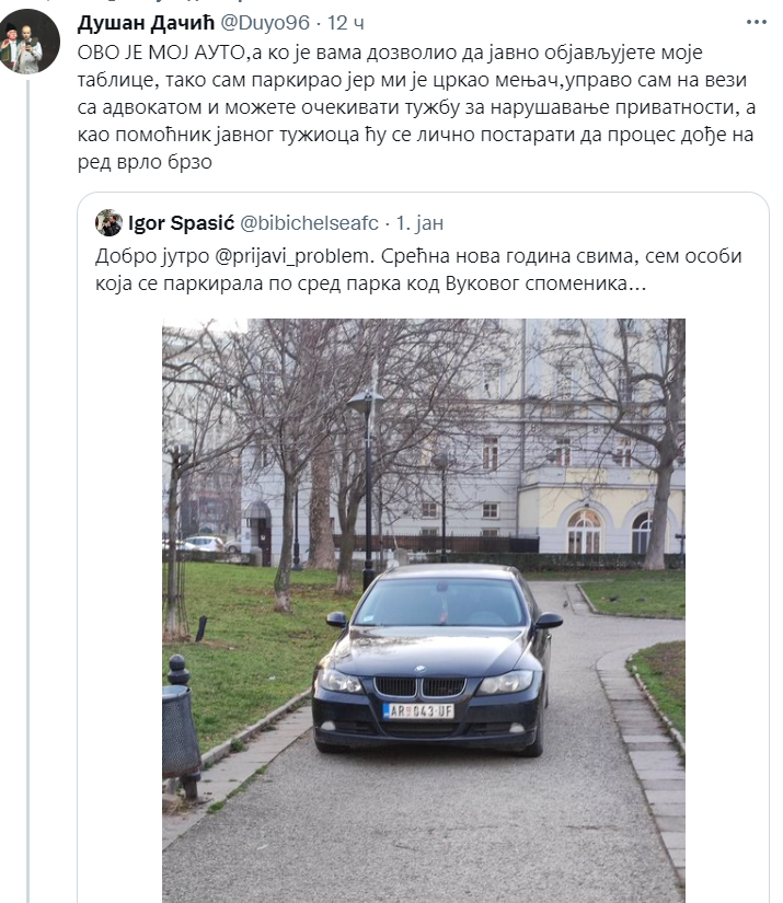Ovaj narod je iskulirao poskupljenje struje od skoro 10% u avgustu, zatim neisporucivanje naplacenog grejanja u oktobru, zatim novo poskupljenje struje od 10%, poskupljenje gasa, povecanje poreza, dvocifrenu inflaciju i jos sva druga poskupljenja koja su dosla ili ce doci sad sa svim tim. Kad nije digao bunt zbog toga, ne bi digao bunt ni zbog kaznjavanja 10-20% bahatih smradova za volanom koji ostavljaju automobilcine po trotoarima i kolovozima. Stavise, mogu da se kladim da bi to mnogi podrzali. Evo otidi u 25 ili 26 i pitaj ih sta bi uradili svinjama koje se parkiraju po kolovozima Maksima Gorkog, Krusevacke, Dusanovca, Ljubicke i ometaju prolazak autobusa... vecina putnika JGP i vecina koji svakodnevno puno pesace bi rado podrzali dranje i maltretiranje 10-20% bahatih svinja koji ne razlikuju privatni posed od trotoara i kolovoza.