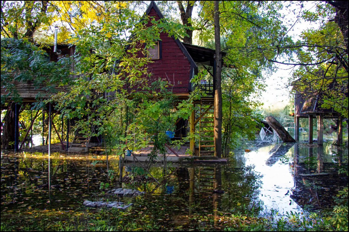 Ту је дуго био насука неки чудан понтон са бродским прозорима.