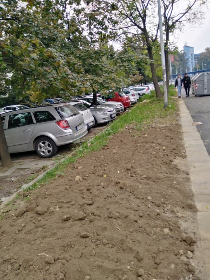 Хумус и обновљени паркинзи са растер плочама. Обновљена су четири паркинг места уместо три.