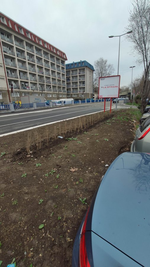 Zasađene su biljke na razdelnom pojasu između parkinga kod kafića i novog dela Studentske ulice.