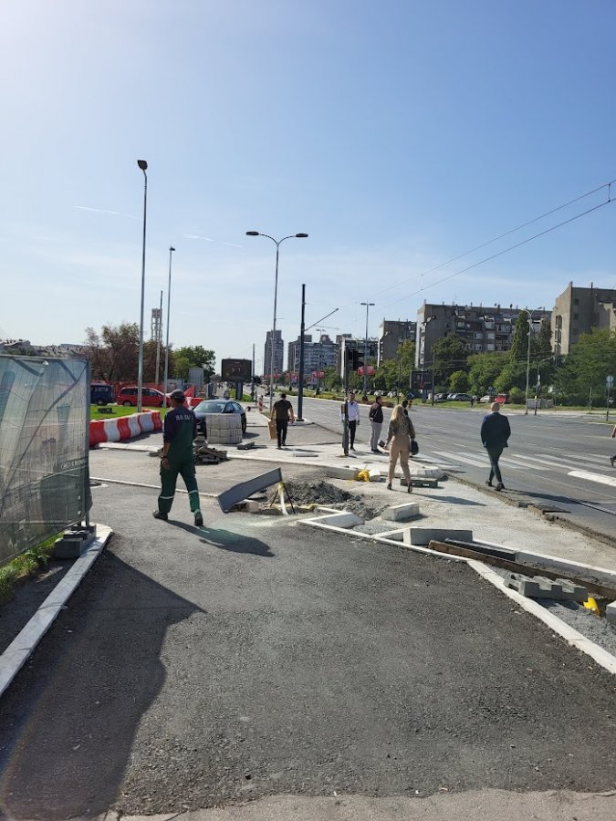 Biciklistička traka- katastrofa!- ko je ovo patetnirao nije prošao 5 km na biciklu!: zbog ovog fizičkog razdvajanja trake od trotoara-paradoks je da će trotoar da rade finišerom a bici stazu (zbog male širine) ručno. Znate kako je prijatno voziti bicikl/trotinet po ručno asfaltiranoj stazi??? Rešenje je jednostavno cela širina se izvede finišerom i odvoji bici staza farbom-ili ako hoće da daju veći konfor biciklistima na ivičnjakom odvojenoj stazi-proširiti je na minimalnu tehnološku širinu koju mogu da izvedu finišerom.