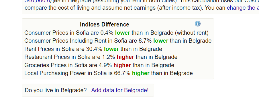 Pa i prosecna plata unesena za Beograd je preniska, ta na Numbeo je niza cak od proseka u drzavi.