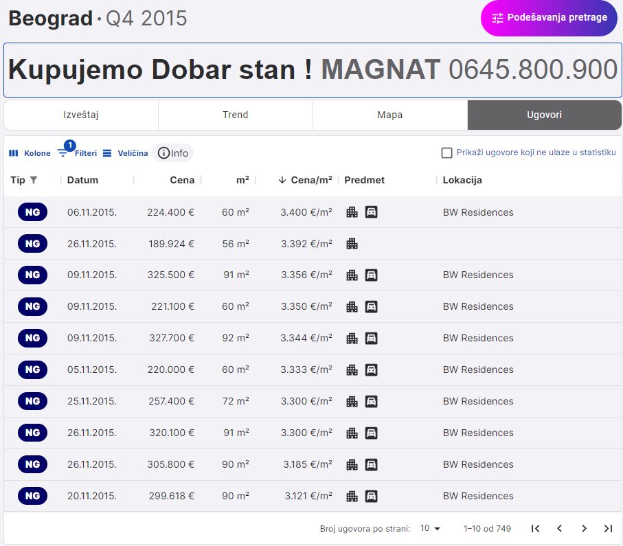 Posto sam na telefonu pa ne prikazuje lepo, hajde sada sortiraj od jeftinije cene ka visom, posto si “slucajno” sortirao od najvise ka nizom. Ja pricam licno iskustvo kad sam kupovao stan, ko nije nikad kupovao on trazi istinu na internetu.BDP, plate, profiti u Srbiji su se od 2015. nominalno udvostrucili, dok je kurs ostao isti. Sto znaci da je za kupca koji radi ili ima firmu u Srbiji bilo jednako tesko da zaradi 300k tada i 600k sada. Za EU gastarbajtere je mozda 2015. bilo dostupnije, jer u EU inflacija u prethodnih par godina nije bilo ni blizu tako visoka kao u Srbiji.
