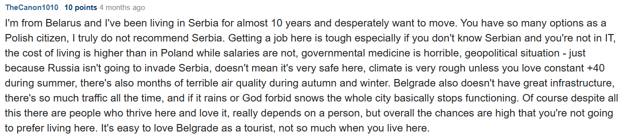 Mislim svi vidite koliko vam $$$ treba da preživite mesec - pa onda stavite na papir koliko vam $$$ treba da živite normalan život za mesec dana (definicija normalnog života jeste da se kupuju kvalitetne namirnice za jelo (ništa ultra tipa organski lososi iz divljeg ulova, već kvalitetna riba, parče mesa, povrće), da ima neki ok auto srednjeg segmenta tipa Škoda oktavija sa kojim prelazi cca 1 -1,5k km mesečno, da ima 2 vikenda mesečno provedenih negde van Bg-a, bar jedan ručak/večera van kuće nedeljno, dva odmora godišnje (more, zimovanje), rekreacija...).