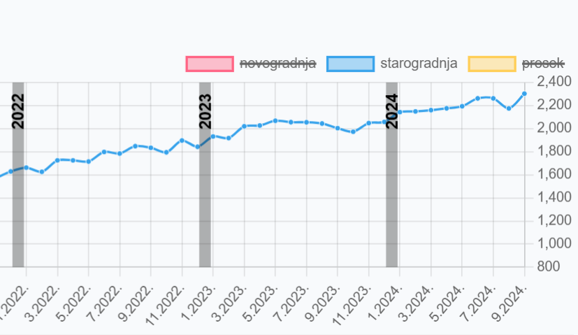 A kako objasniti stalan skok cena starogradnje? Novogradnja statistički navodno stoji (što ne znamo zapravo dok se zgrade koje su počele sa gradnjom pre 1-2 godine ne uknjiže), ali starogradnja i dalje veoma stabilnim tempom skače u ceni od 2022.