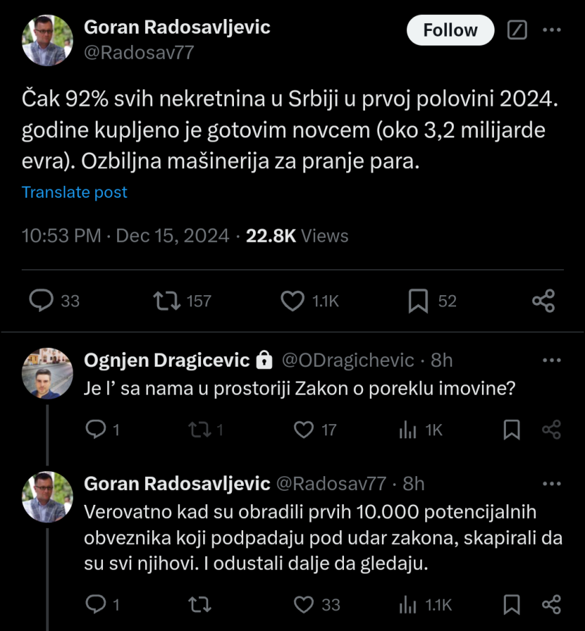 A eto, za razliku od nekih koji samo pljuju, spinuju i pod*bavaju ljude ovde koji cesto to ni ne kapiraju, znam itekako mnogo toga o nekretninama, trzistu, funkcionisanju ove smejurije od drzave.
