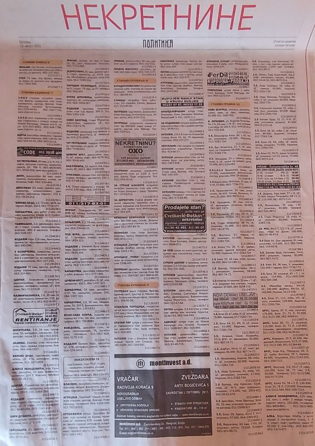 Sećate se starih vremena, kada se čeka novi izdanje halo oglasa da bi se iznajmio stan? Tipa izlazi četvrtkom ali se vec u sredu uveče pojavi na raskrsnici kod Hajata?