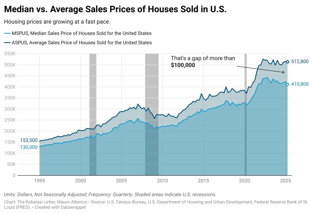 Medijana i prosek cene stanova se sve više razilaze. Ne znam da li takva statistika postoji i za Srbiju, ali bi me iznenadilo ako ovo kod nas nije još izraženije.