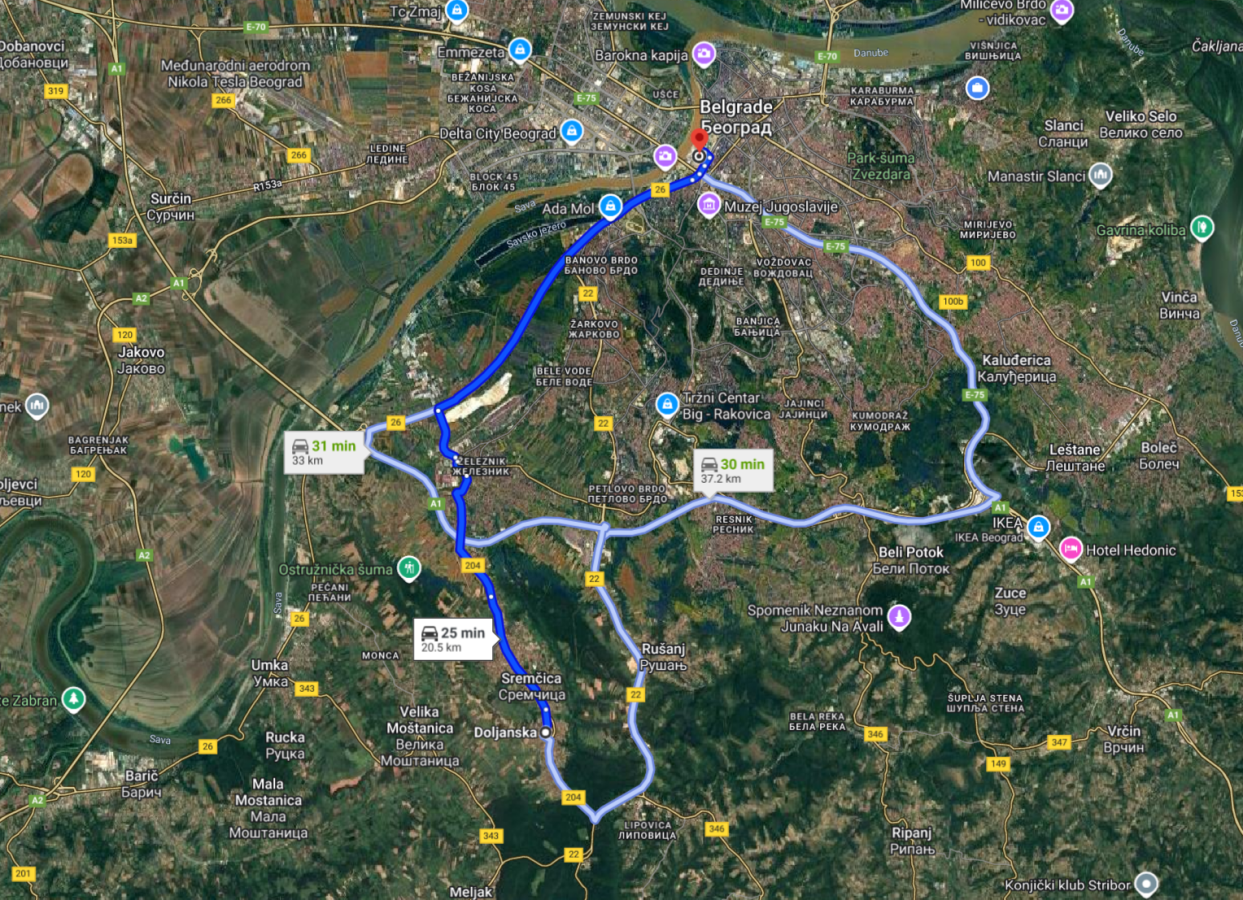 Evo do centra za 25 minuta ako postujes ogranicenje brzine - verovatno moze i za 20min ako nagaris.