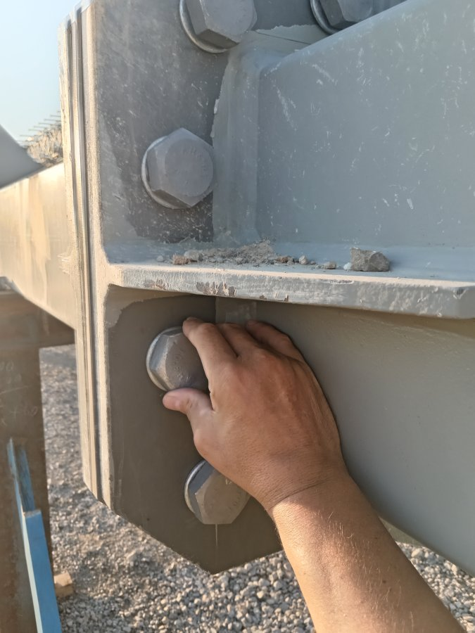 Naravno da nisu pritegnuti, samo su postavljeni da se rešetka pozicionira na zemlji. Kada bude u geometrijskom dobrom položaju onda se svi zavrtnjevi pritežu.Deluje da se zavrtnjevi jedva drze na navoju. Ako je ovo slika "do kraja" stegnute veze, onda je tuzno.