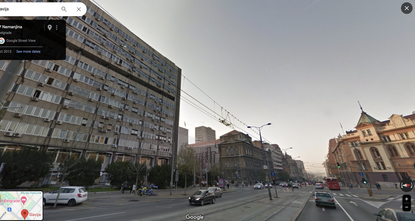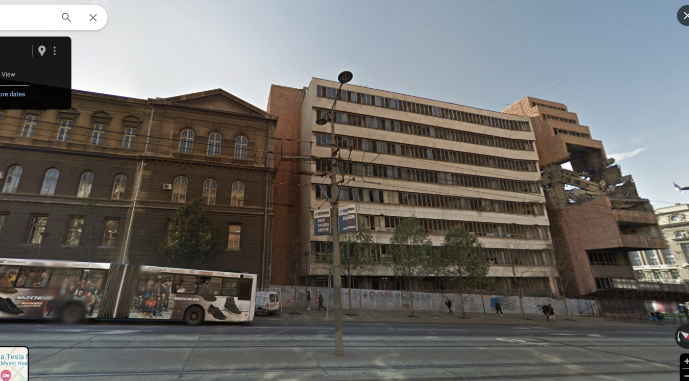 Ono što može i treba da se digne u vazduh jesu Dobrovićev "direlikt" (Oh yes! The term is appropriate given that the USA punched it slightly, but it was ultimately Serbia that neglected it for decades.) s obe strane Nemanjine na uglu sa Kneza Miloša i svakako golubarnik prekoputa manježa kome ni skidanje klima ne bi pomoglo budući da bi centar bio okićen B23-likom ciglom.