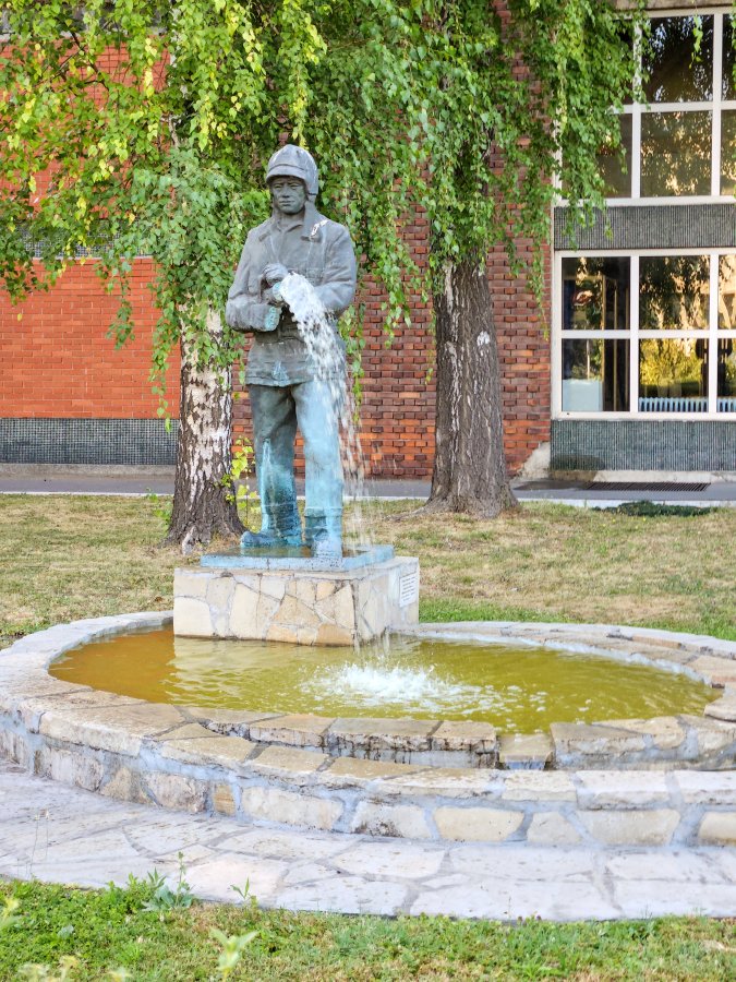 Al, postoji i jedna fontana za pohvalu, dobro održavana, verovatno nije u nadležnosti grada, efektan primer socrealizma i retko dobro proračunato rešenje da voda ne prska van i mimo fontane, prava je šteta što je tako skrajnutaZnas tu su radovi ne stižu