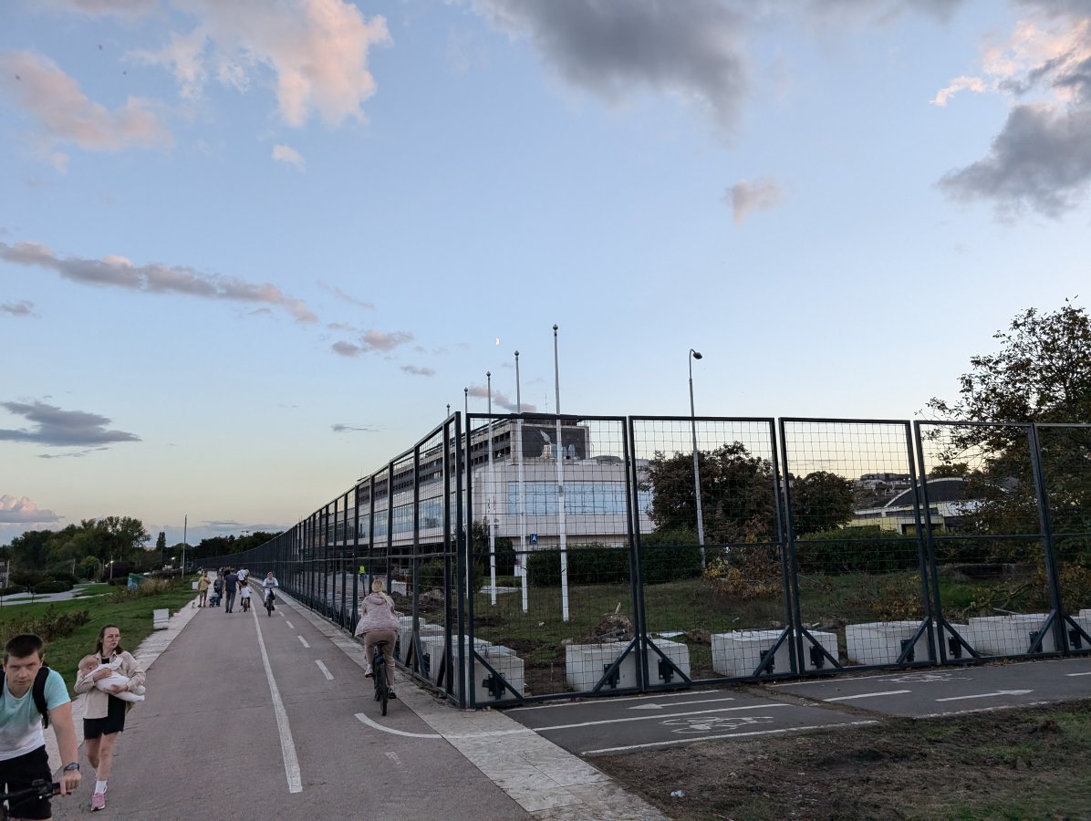 Blednira se svako drugo gradilsite. To se ne radi da bih se nesto sakrilo, nego radi sigurnosti (prasina, varnice, dim itd.)Gradilište je blindirano, za svaku slučaj.