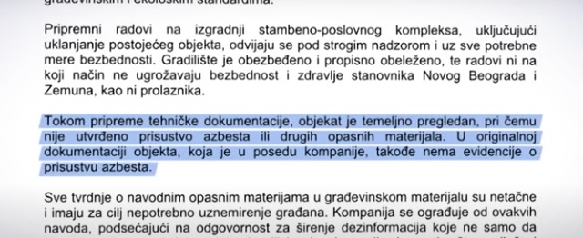 jednostavan koncept, mi ne mozemo da regulisemo i da dovedemo da odgovaraju ljudi koji su radili na necemu pre godinu dve, a kamoli 10-15-20-30 godina koliko treba da dodje do mezotelioma, rak koji ima 100% smrtnosti... Mi smo tuzna zemlja bez ikakvih pravila, samo radimo za vladajuci sloj a oni nas gaze i ubijaju bez ikakve odgovornosti. A da azbesta ima tamo, ima... samo je tuzno koliko ljudi pojma nemaju sta je azbest i koliko je opasan, ovo je samo next level shit koji ce da im prodje