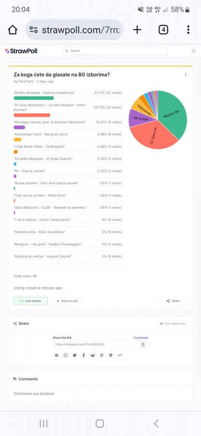Moja zena je htela da ne glasa, plan je bio da je odvezem na posao pa da produzim na bm. Ubedjivao sam je neko vreme ali poslednjih nedelju dana joj nisam rec rekao. I taman da je ostavim kod kanca ona niotkuda ‘dobro ajde vozi me, glasacu, nece moci se zivi od tebe i kuma ako ne izadjem’. Tako da jedna mala pobeda za pocetak :)