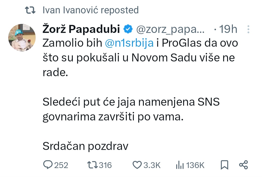 Šta Ivanović tvituje, ne zanimna me, studenti ga pozvali, podržao ih, zvao u svoje emisije par puta..