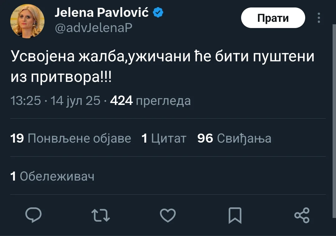 Ова информација је тачна.Ukinut pritvor svima u Uzicu