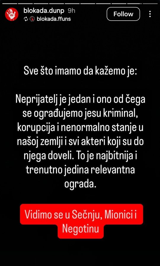 Jasno je kao dan da ovo nema smisla više, da su mozgovi već sprženi preteranim kenjanjem, da nisu svi ljudi stvoreni za ovo, a naročito mlađi kojima treba više konkretne akcije i da je red da se objavi Studentska lista i da postoji jedno telo koje mora da sarađuje i vodi ovo sve negde.