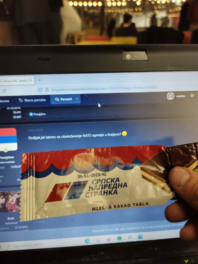 Čuj da izađe iz anonimnosti, pa kako da preleti u tom slučaju, to mu je expertiza.@Posejdon Protekla dva dana sam bio kod tebe u Golsvordijevoj 10 gde skupljamo potpise za predsedničku kandidaturu Biljane Stojkovićispred koalicije Moramo. Inače, pre neki dan sam bio u Bloku 45 MZ "Sava" gde je neki od vaših aktivista bacio na ulicu vaš promotivni materijal za koji sam do tada mislio da je samo plod mašte ostrašćenih opozicionara. Morao sam da ga uzmem kao suvenir, planiram da ga uramim i stavim na zid kao sećanje na SNS vlast 2013-2022. godine.