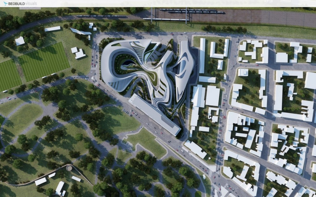 Na kraju ce sve ispasti ok, da su to izgradili, morali bi Zahu da rusimo, sto je greota malo.Ako za necim treba zaliti ovde posto je vec islo ka gradnji, to je manjak hrabrosti onih grka Lambde i projekta Zahe Hadid sa pocetka ove price - jer koliko sam cuo oni su odustali jer im je delovalo neisplativo da kvadrat tu bude nesto jako visoko, tipa 7-10k. Koliko su se samo prevarili (to je bila 2012)z To je bio potpunoPogledajte prilog 178502 razradjen projekat do nivoa gradjevinske dozvole sa premium hotelom od 5 zvezdica i javnim prostorom.