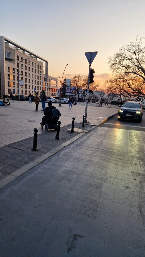 Ово је стварно мучна сцена. Тежак степен дехуманизације инфраструктуре строгог центра, зарад убрзања путивања од куће до посла једног човека.Присуствовао сцени када је инвалид прелазио улицу преко укинутог прелаза