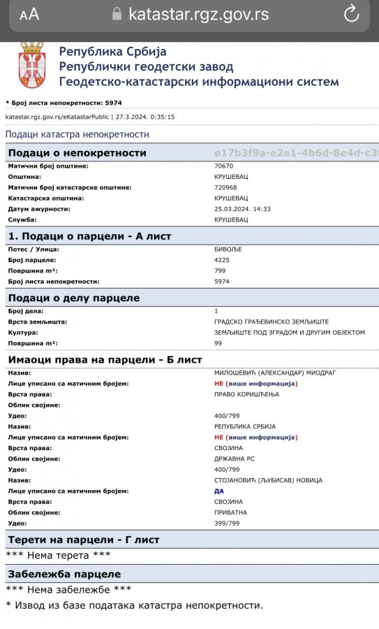Није ово државно, него је вероватно у поступку легализације, а из неког разлога када сте у легализацији, пренесе се имовина на државу а ви добијете право кришћења.Parcela 799m2,