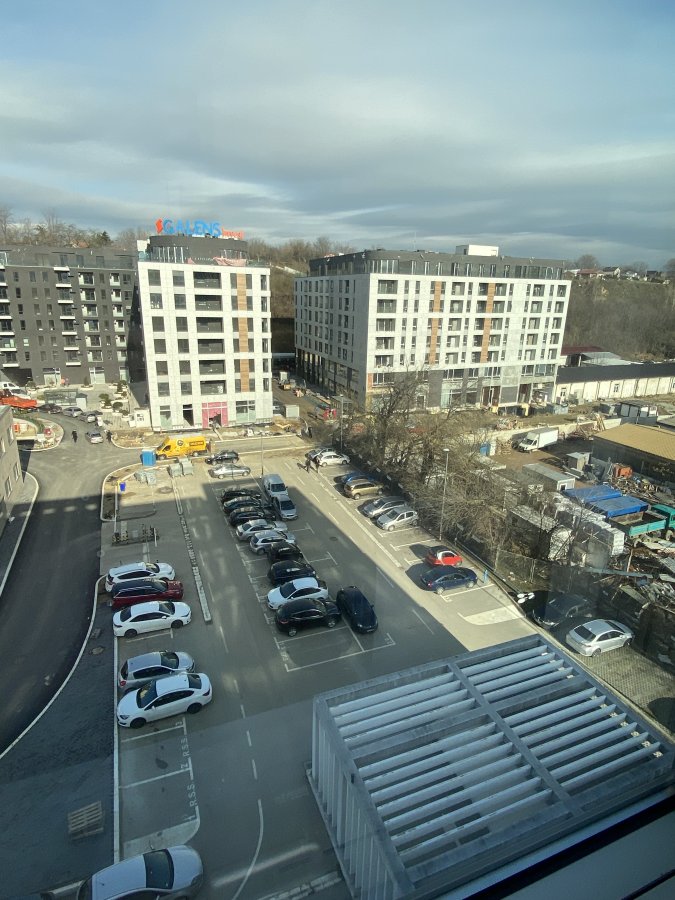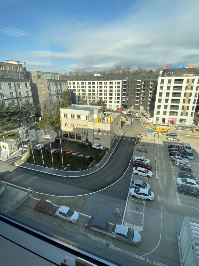 Takođe treba dovršiti i asfaltiranje dela slepe ulice između L zgrade i potkovice, gde treba da bude nekoliko parking mesta koja će služiti lokalima i za dostave u UniverExport koji će se nalaziti u podnožju potkovice.
