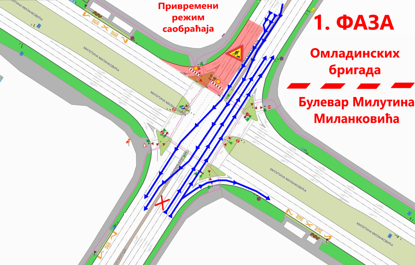 Током радова на реконструкцији водовода и канализације, које изводи Град Београду, за потребе Дирекцијe за грађевинско земљиште и изградњу Београда Ј.П., доћи ће до измене режима саобараћаја у ул. Омладинских бригада на раскрсници са Милутина Миланковића, у временском периоду од 19.06.2025. године до 30.06.2025. године, а након тога за време извођења самих радова на реконструкцији биће веће измене режима саобраћаја у ул. Омладинских бригада у зони раскрснице са Булеваром Милутина Миланковића, у временском периоду од 01.07.2025. до 31.08.2025. године.