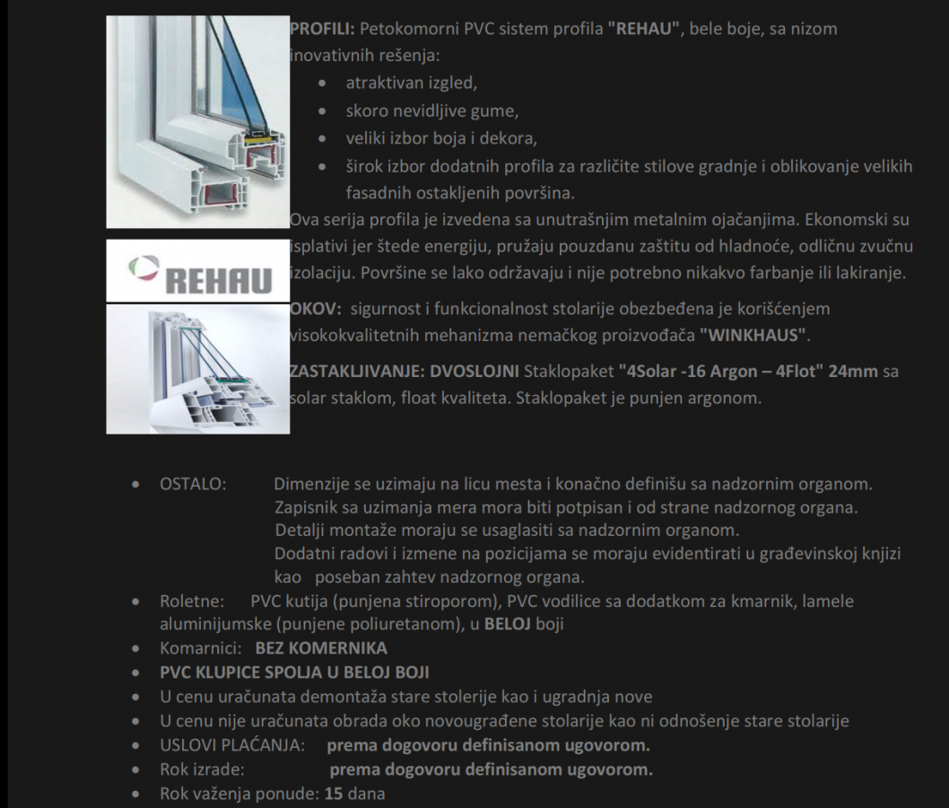 Menjam dva prozora na juznoj strani (sunce celog dana) i interesuje me kakvo je vase misljenje i kako bi izgledala ponuda da je vi sastavljate.
