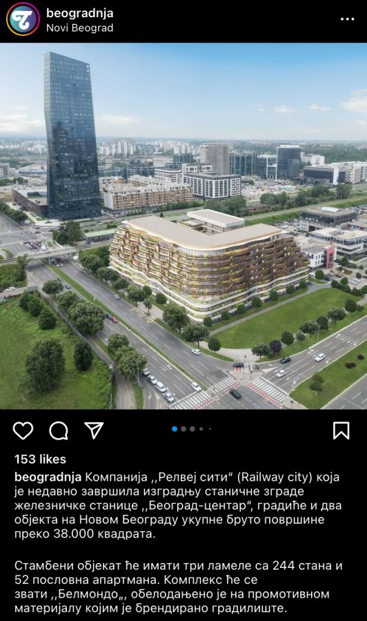 Још једна зелена површина биће претворена у градилиште. Реч је о парцели од 7.485 квадратних метара у Блоку 19а уз Улицу Владимира Поповића, а прекопута Сава центра, раздваја их Булевар Арсенија Чарнојевића (ауто-пут), коју је Републичка дирекција за имовину (РДИ) огласила на продају. То земљиште је у јавној својини Србије, а у огласу о отуђењу те парцеле навела је да је у питању неизграђено грађевинско земљиште. Почетна цена по којој се продаје квадрат јесте 58.932 динара, односно укупно 441.106.020 динара за 7.485 квадратних метара.