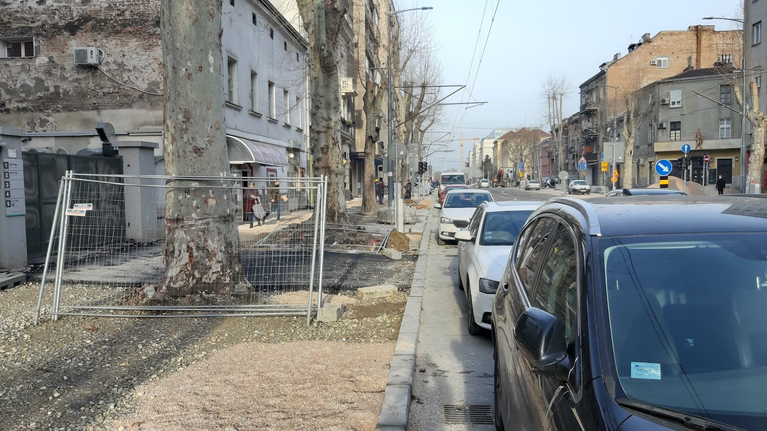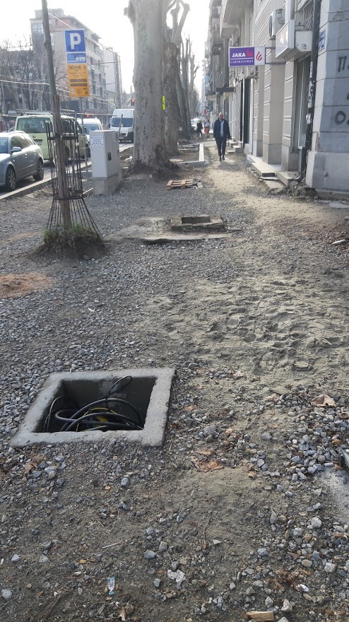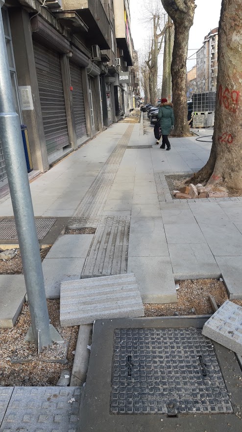 Pogled ka pijaci, nam govori da trotoari na neparnoj strani ugrubo postavljeni: