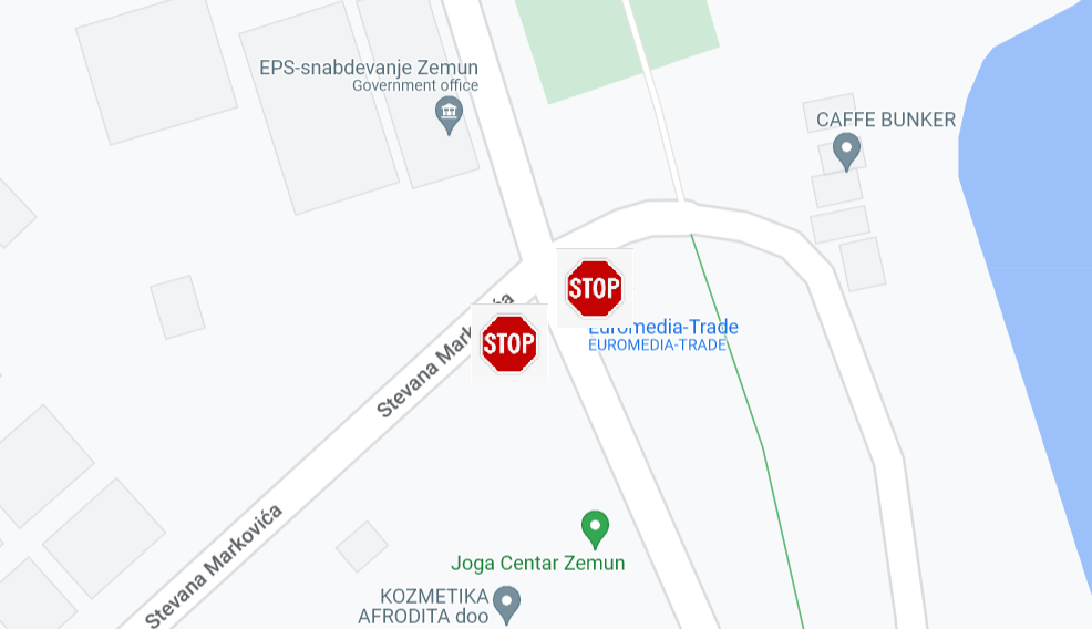 Прошле године сам писао да након радова на улици Земунски Кеј постоји неусаглашена сигнализација на углу са Стевана Марковића. Ситуација са "стоповима" из два правца је доводила до тока да се питање предности понекад могу својевољно тумачити тј, да је сигналицазија двосмислена.јел може неко да објасни логику знакова на раскрсници Стевана Марковића са Кејом. У питању је обична Т раскрсница и ако на google maps-у не изгледа тако, јер се ту види и четврти крак који заправо није отворен за саобраћај аутомобила. Постоје два стоп знака, улазак из СМ на КО, као и улазак у раскрсницу дуж КО из правца хотела Југославија: