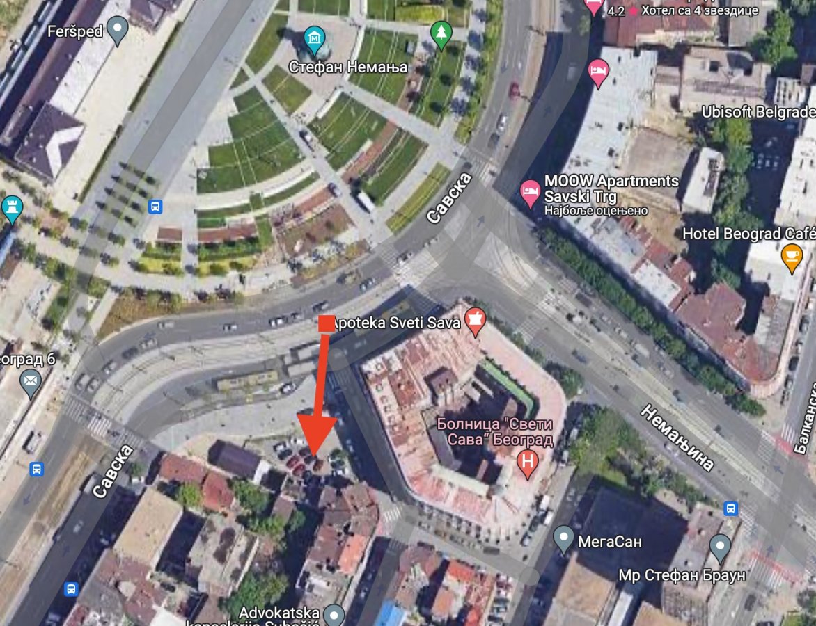 Pozdrav svima, da li je neko upoznat sta je plan da se gradi na mestu sadasnjeg "divljeg" parkinga pored bolnice Sveti Sava (oznaceno na mapi strelicom)? Hvala!