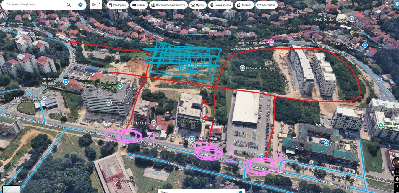 2. umesto da se otvori ka skojevskoj donja ulica u kompletu nju je neki investitorpresekao svojim blokom jer lepsi mu je pogled i moze da se jos prosiri na sumicu (plava skrabotina)