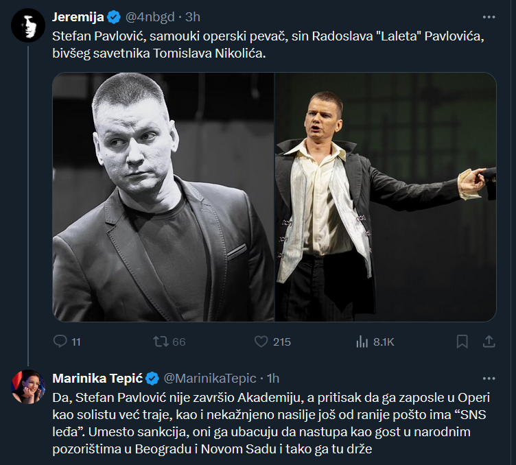 Bizar teški, razumem kad hoće da otimaju unosne poslove, ali lik koji na silu hoće da bude operski pevač, a nije uspeo da upiše i završi akademiju hahaha. Jezive nakaze.